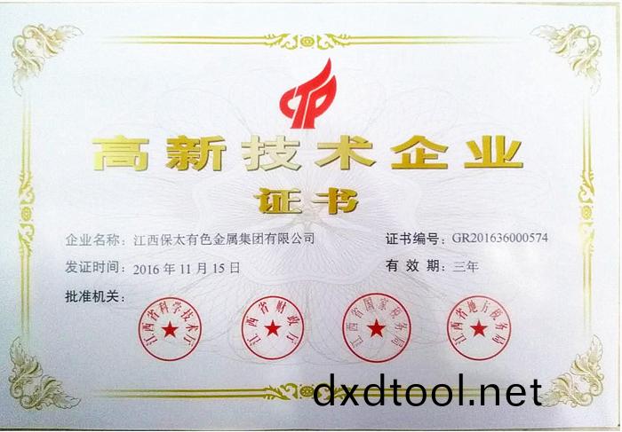 ? ?On February 24, 2017, Ganggao Enterprise recognized [2017] No. 2 "notice of the leading Group of Jiangxi Province High Enterprise Identification work on the publication of the list of High-tech Enterprises in Jiangxi Province in 2016", Baotai Group on the list, passes through the national high-tech enterprise identification. Certificate number: GR201636000574, is valid for 3 years (from November 15, 2016 to November 14, 2019).