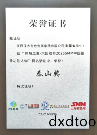 On April 27, 2025, Peng Baotai, Dean of the Industrialization Research Institute for Recycled Metals at Jiangxi Baotai Nonferrous Metals Group Co., Ltd., was awarded the title?of?National Model Worker in the Ministry of Industry and Information Technology (MIIT) System in recognition of his outstanding contributions to the nonferrous metals sector. Earlier, on April 17, he received the Taishan Award?during the nomination event for?“Soaring Wings Pillars of the Nation:2025 SMM China Aluminum Industry Meritorious Figures”.?These two prestigious accolades reflect Peng Baotai’s years of dedicated work in the recycled metals industry and his exemplary leadership in driving corporate development. Through remarkable achievements in technological innovation and industrial management, he has established himself as a benchmark figure in the sector.